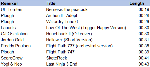 Rob Hubbard takes the top three positions, and no surprise that his classic interpretation of the Commando main theme is top of the list. What this also does show you is how spread out the remixes of the Last Ninja games are in terms of tunes within the suites, with only four of them featuring: