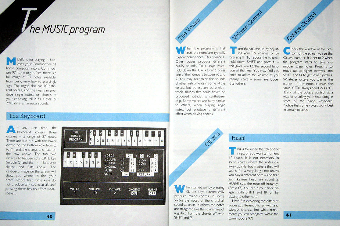 The software tape is pretty rudimentary, though The Music Program is worth loading. It's a tiny touch sluggish but you can also tease some great sounds from it with one-finger glides, multiple voices and a wide octave range per setting.